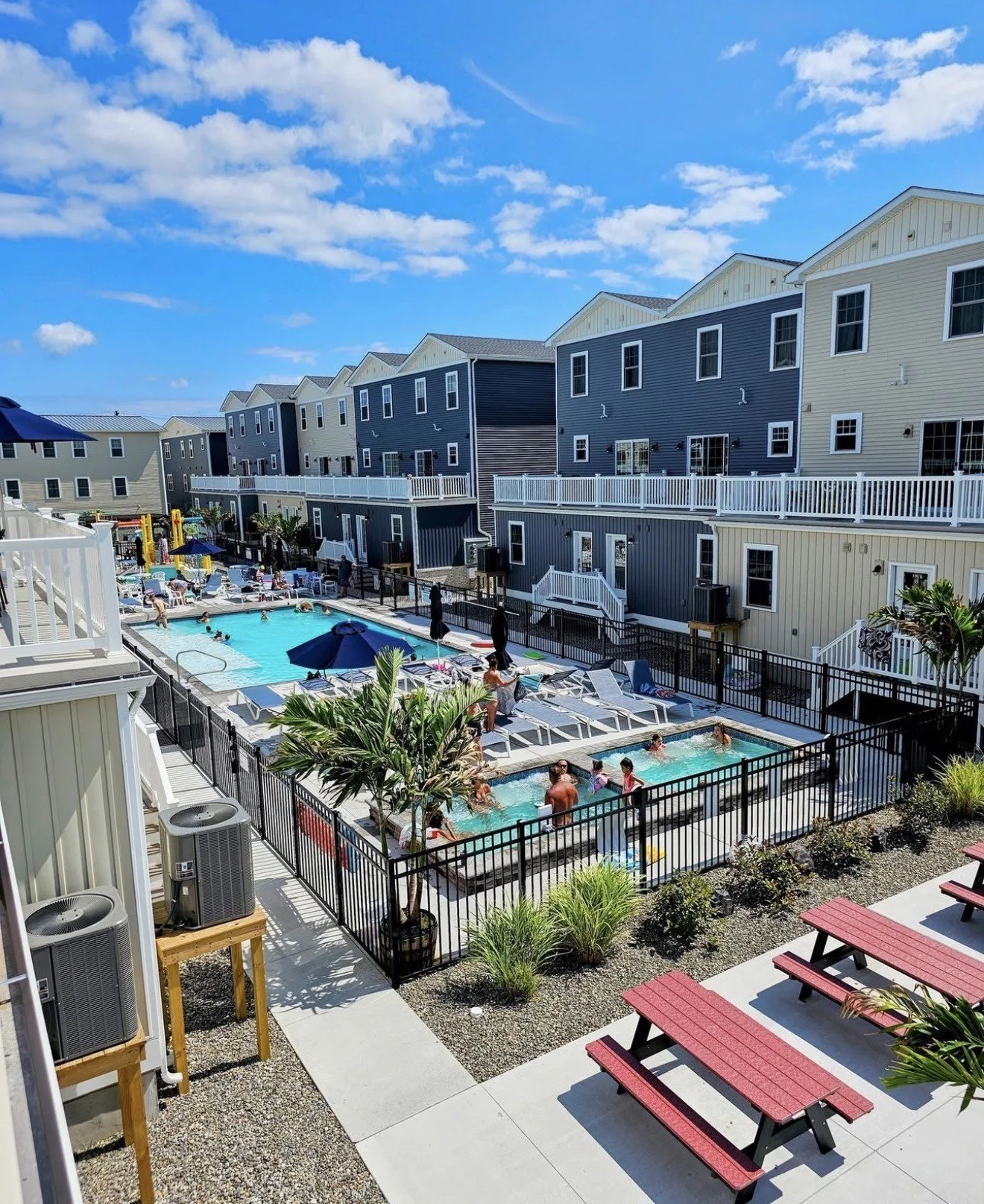 Oasis by Seaport Stays: For those seeking space and privacy, our upscale townhomes and condos deliver. Full kitchens, decks, two-car garages, generous layouts, and a shared amenity zone that includes pools, hot tubs, fire pits, splash pad and grilling stations. Park your car… and let the shore come to you.